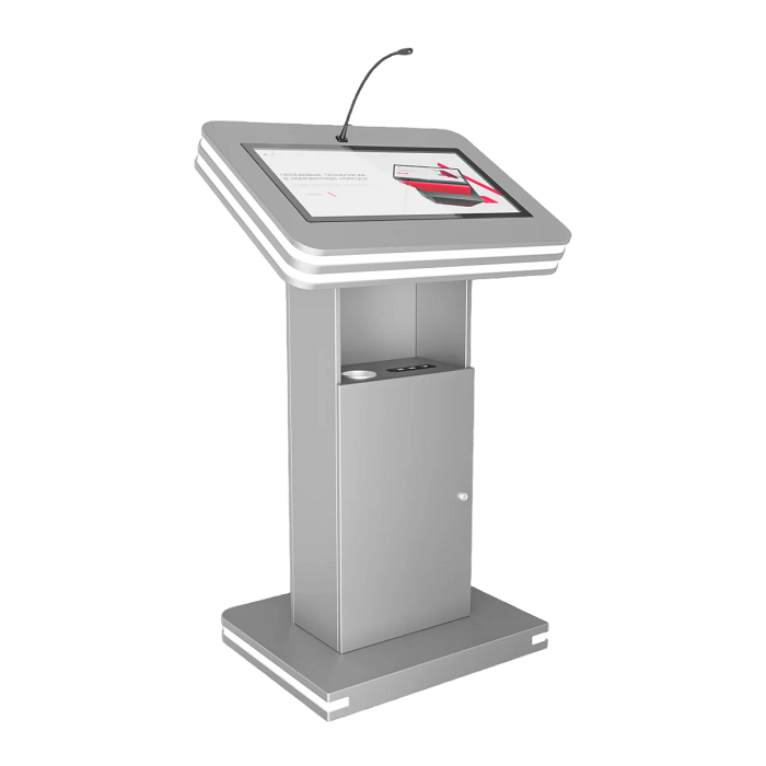 Интерактивная трибуна Light 21,5" — стильная модель, которая украсит любой бизнес-форум и конференцию. Встроенные микрофоны передают звук на большую аудиторию, удобный интерактивный дисплей с мультитач-системой позволяет отображать необходимую информацию не только для спикера, но и для зрителей, передавая ее на большой экран. Помимо этого, в трибуне есть полочка для воды, а также внешние разъемы. Яркий дизайн корпуса со светодиодным узором не сможет оставить никого равнодушным.